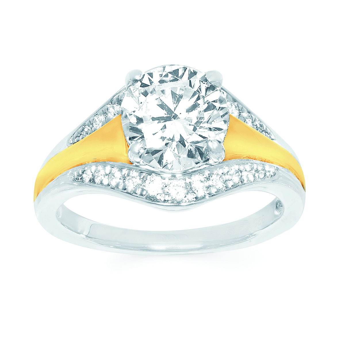 Engagement Ring Modern Bridal: 1/4 Ctw. Diamond Semi Mount shown with 2 Ct. Round Center Diamond in 14K Gold